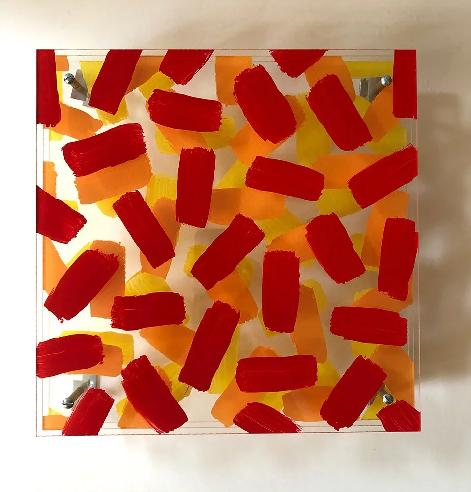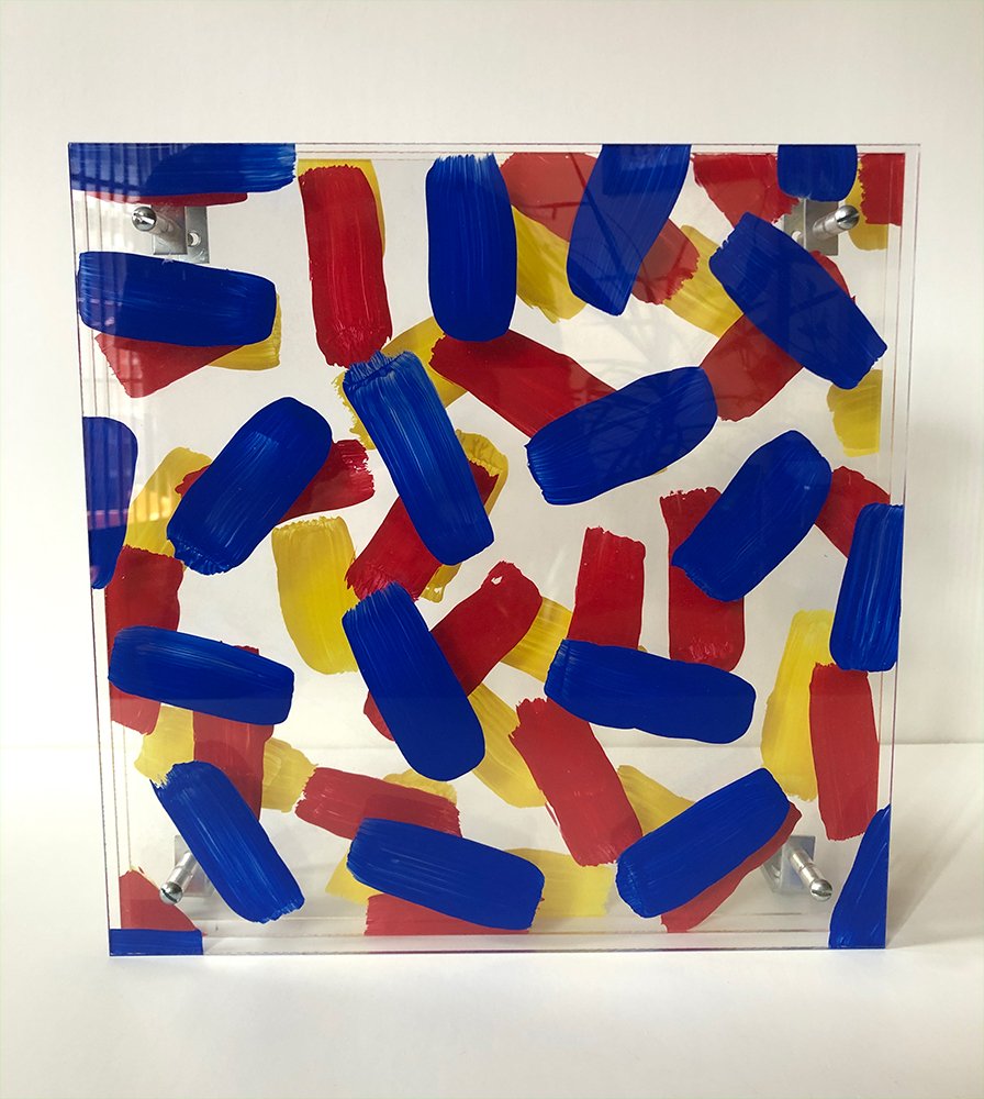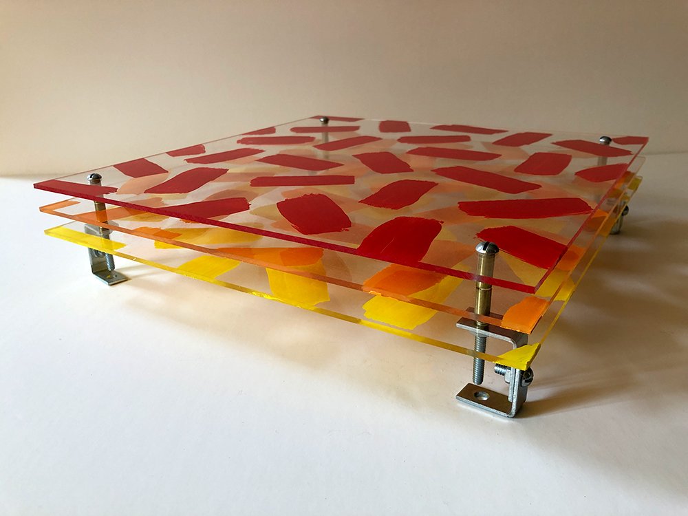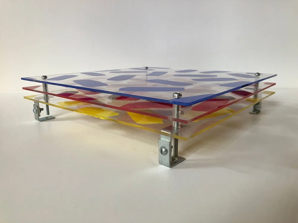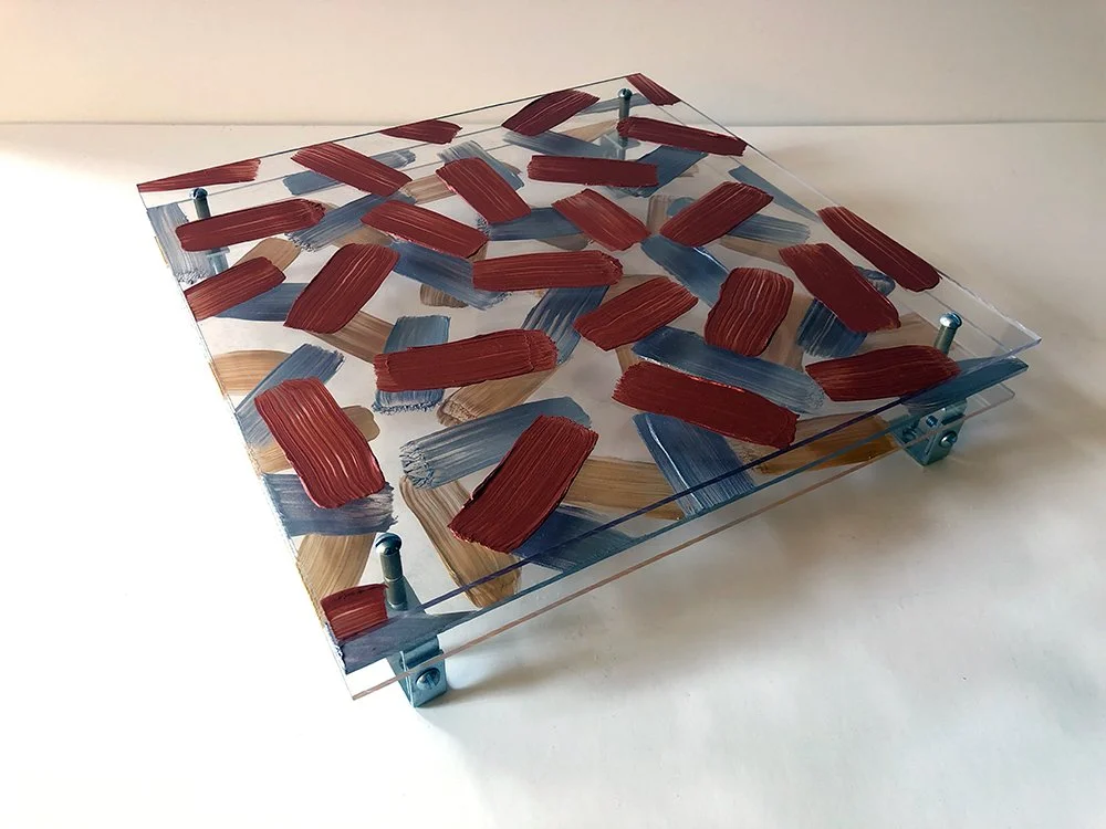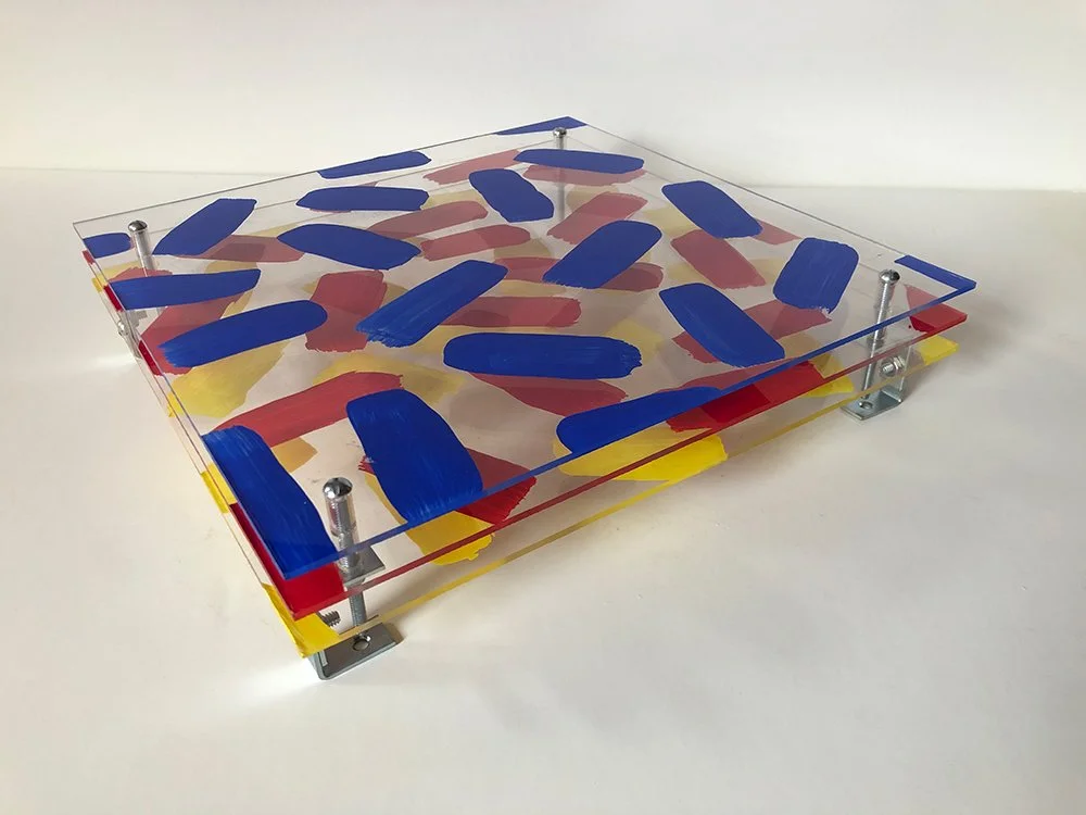 Acrylic Paint, Plexiglass, Bolts, Metal Brackets