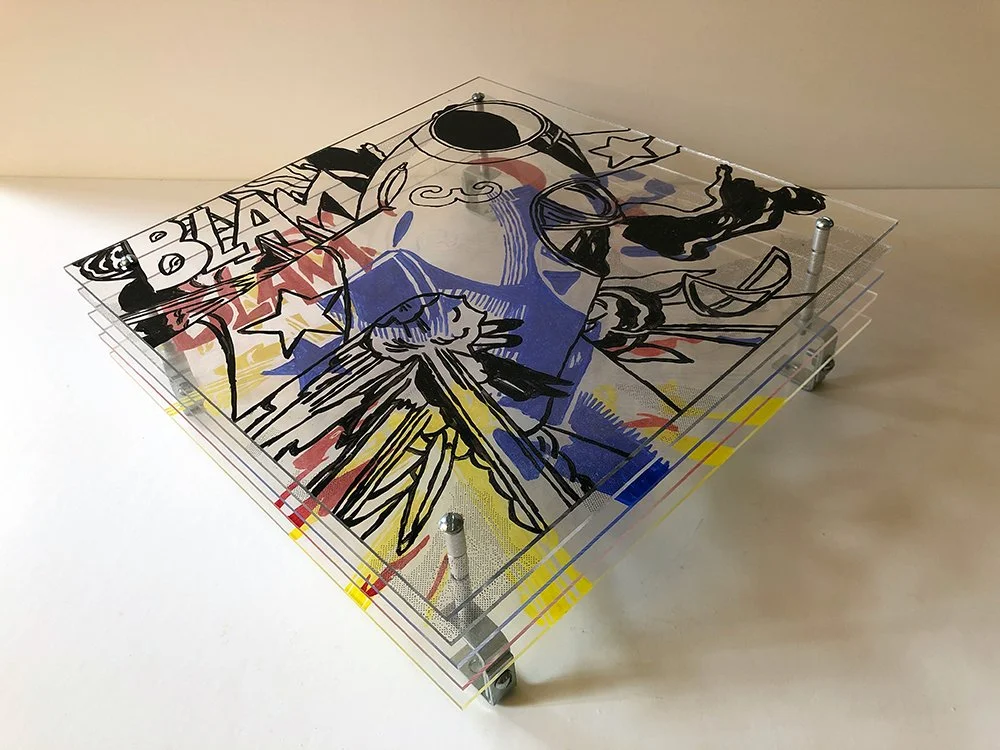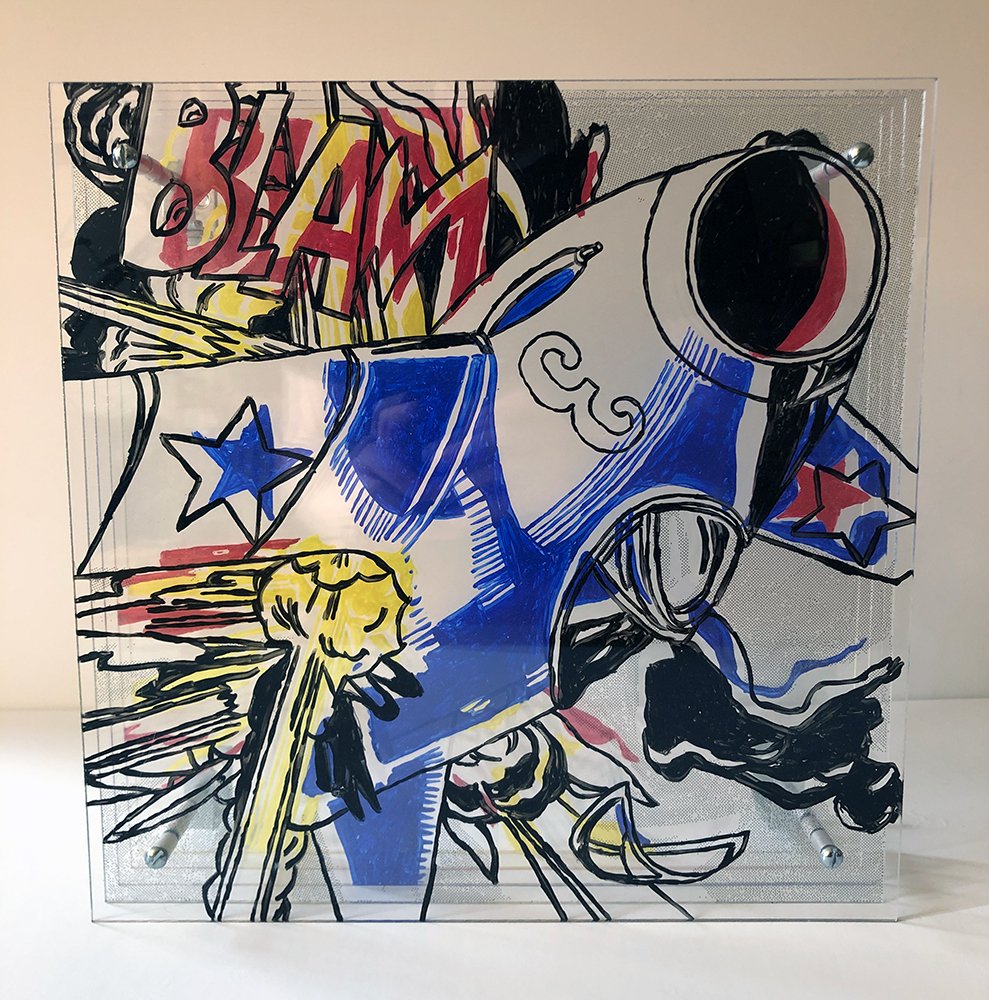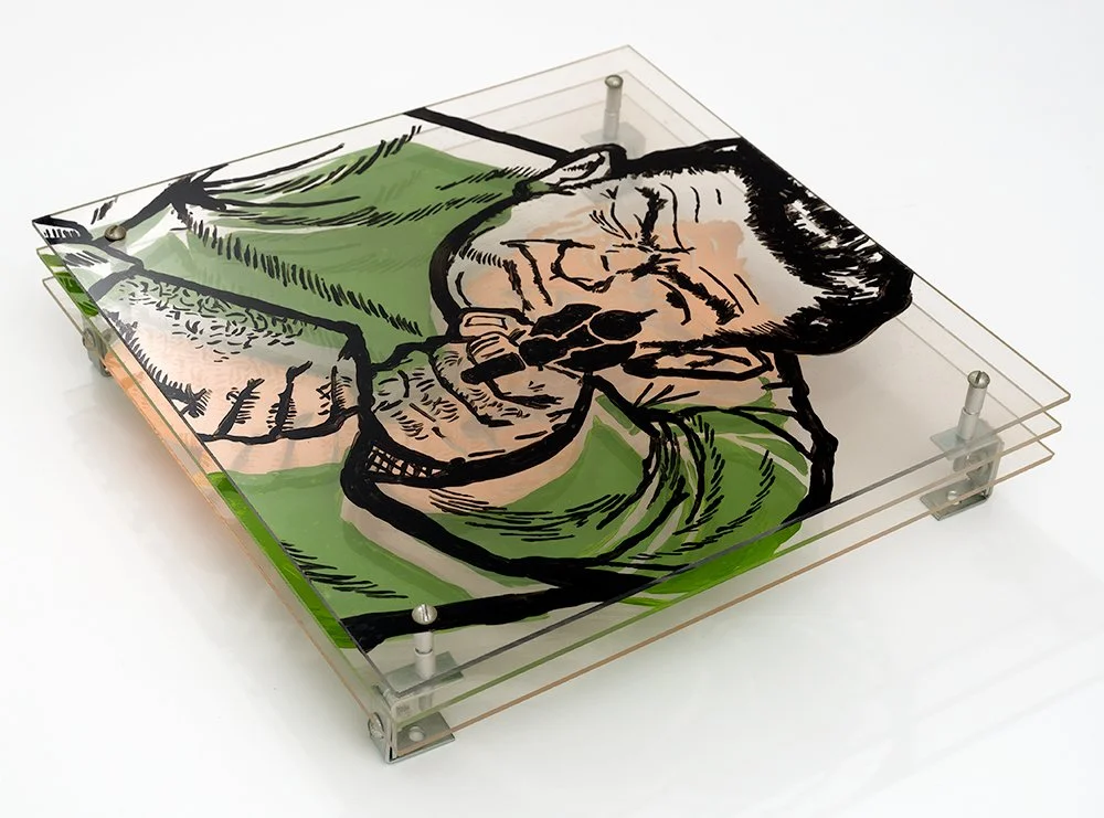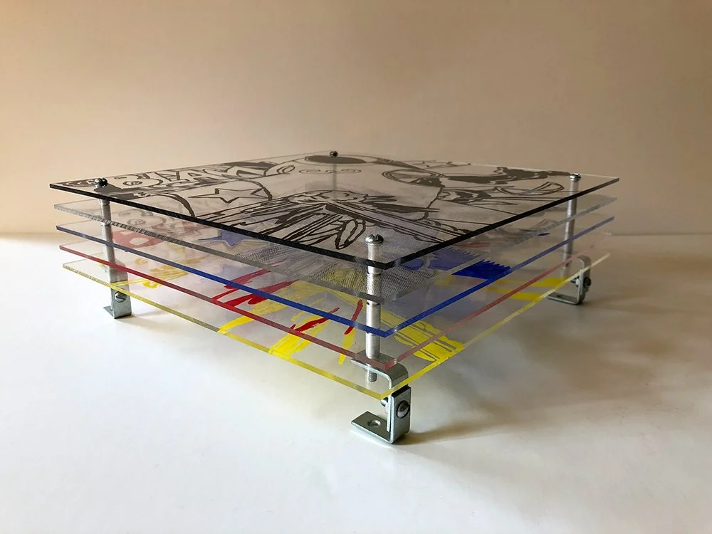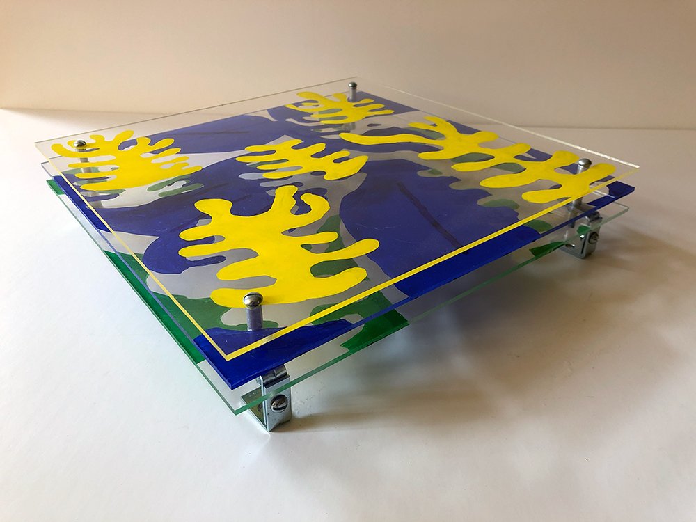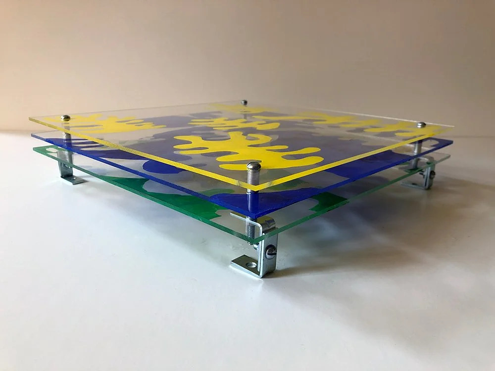 Acrylic Paint, Plexiglass, Bolts, Metal Brackets