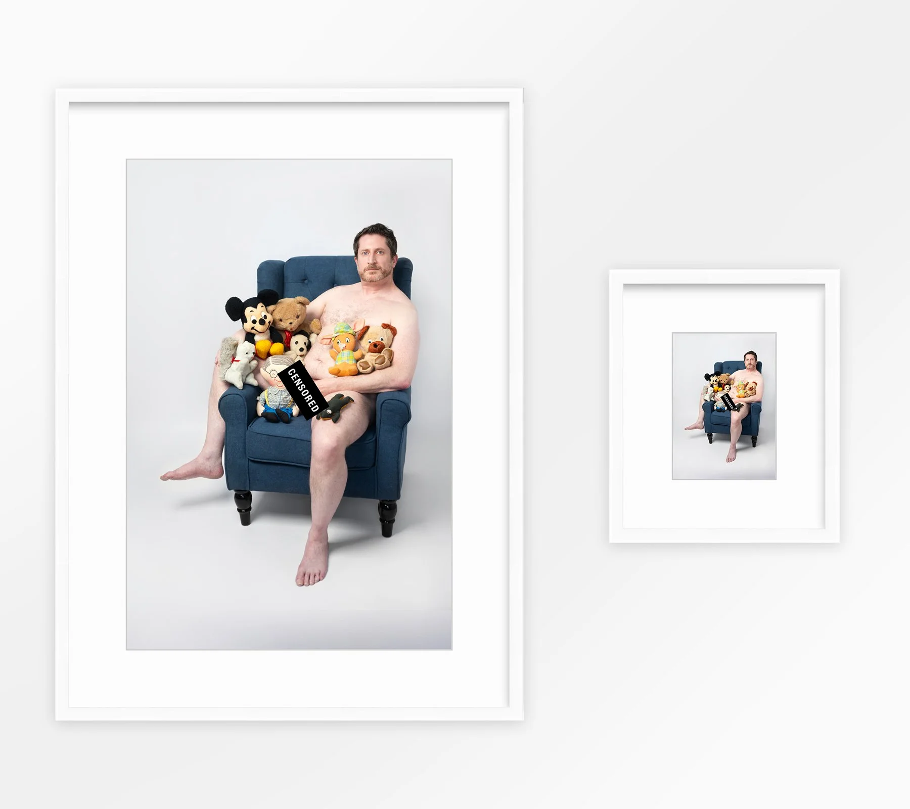 In the portrait I am sitting with my childhood stuffed toy animals in my lap. I’m revisiting these early objects of comfort and imagination, that have signs of wear, were well loved, and were silent witnesses to my memories. I feel it is simultaneously uncomfortable, unguarded, joyful, playful and warmhearted.